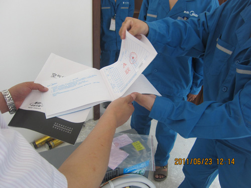 2、美的專業安裝師傅正與用戶一同給用戶拆箱,并按說明書檢查箱內物品狀況。